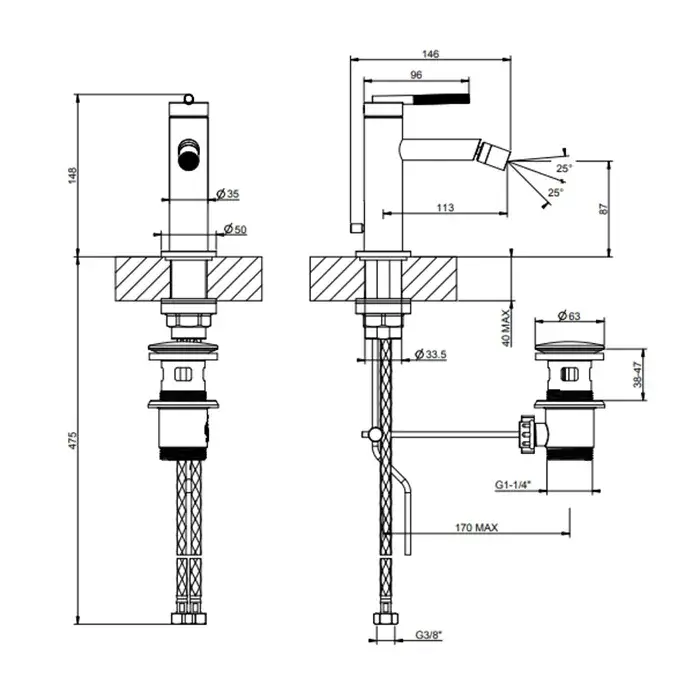Gessi Ingranaggio Смеситель для биде на 1 отв. с донным клапаном, цвет: warm bronze PVD 63507#735