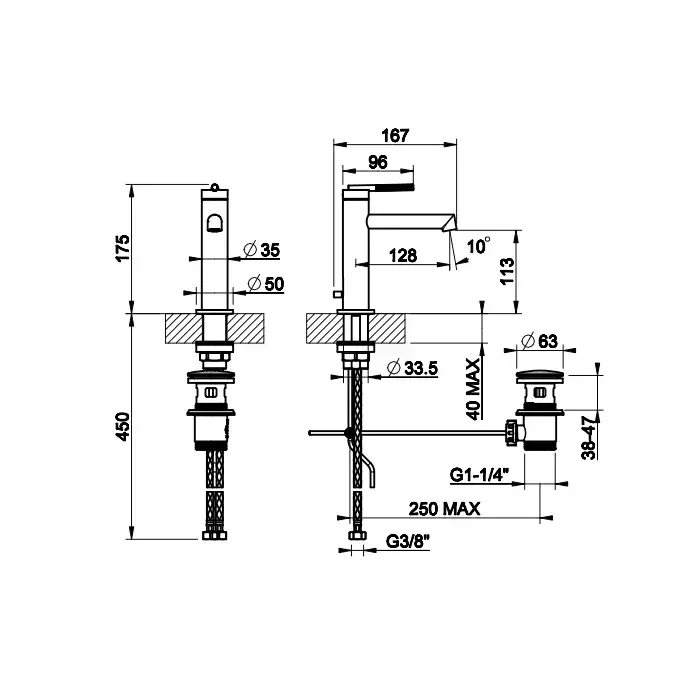 Высота излива, см