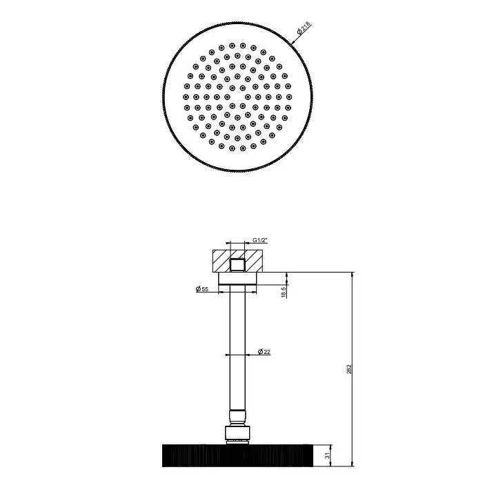 Размер верхнего душа, см