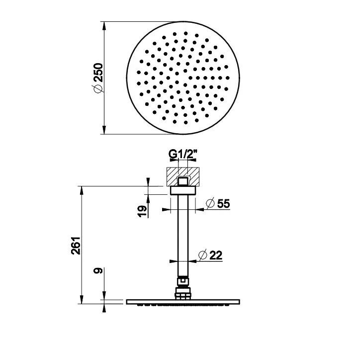 Размер верхнего душа, см