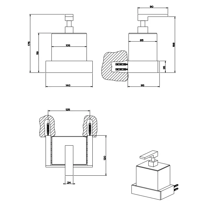 Gessi Inverso/Rettangolo Дозатор для жидкого мыла, подвесной, черная колба, цвет: brushed brass PVD 20814#727