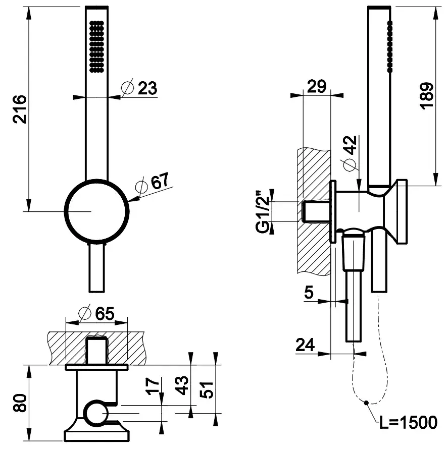 Держатель с выводом воды, Шланг, Лейка, Отделочная вставка