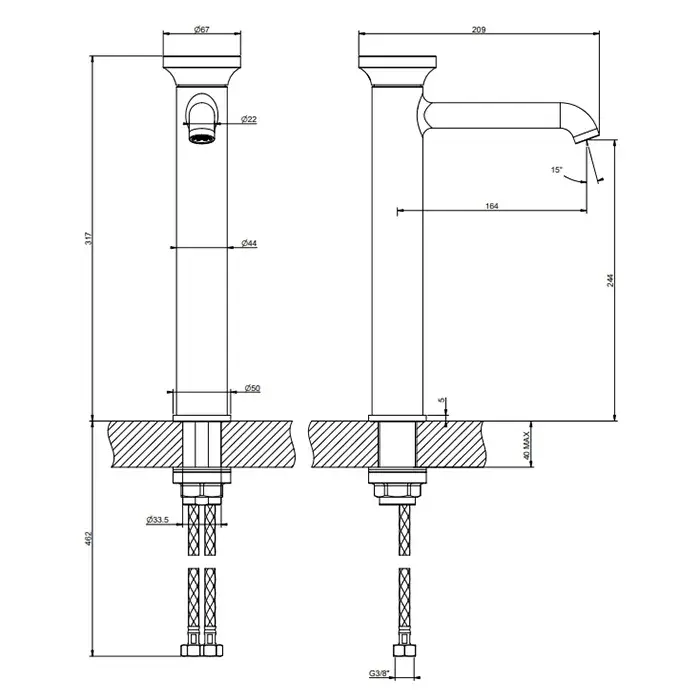 Gessi Origini Смеситель для раковины, без д/к, высота излива 24,4 см, цвет: brushed brass PVD 66004#727