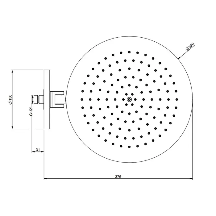 Размер верхнего душа, см