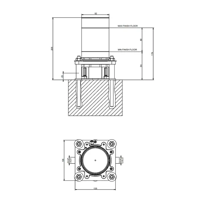 Gessi Outdoor Встраиваемая часть для уличной душевой стойки, цвет: steel brushed 63215#239