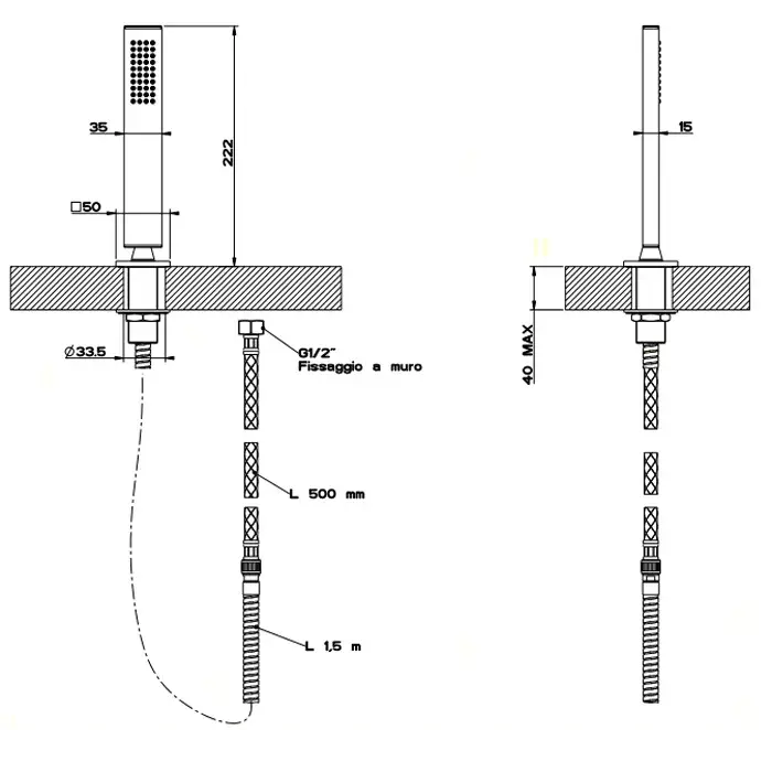 Gessi Rettangolo Душевой гарнитур на борт ванны: лейка, держатель, шланг 150 см, цвет: chrome 20127#031