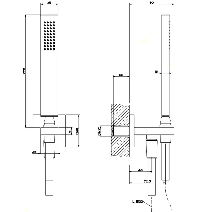 Gessi Rettangolo Душевой гарнитур: ручной душ, держатель с выводом воды, шланг 150 см, цвет: chrome 20123#031