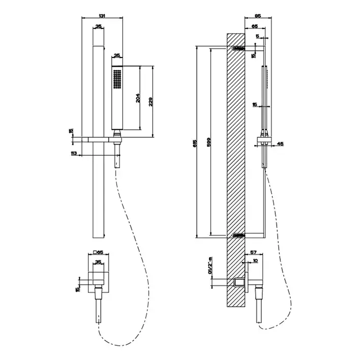 Gessi Rettangolo Душевой гарнитур: ручной душ, штанга 62 см,шланг 150 см, цвет: finox brushed nickel 20142#149