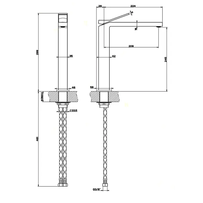 Gessi Rettangolo K Смеситель для раковины на 1 отверстие, излив 21,3 cм, цвет хром 53004#031