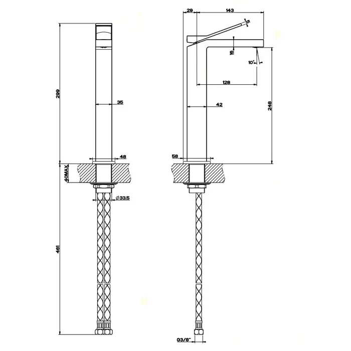 Gessi Rettangolo K Смеситель для раковины на 1 отверстие, излив 21,3 cм, цвет: finox brushed nickel 53004#149