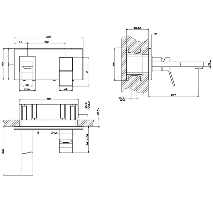 Gessi Rettangolo K Встраиваемый однорычажный Смеситель для раковины, цвет хром 53088#031