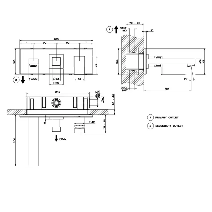 Gessi Rettangolo Вывод воды на 1/2, цвет: finox brushed nickel 20169#149