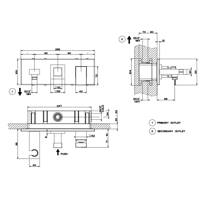 переключатель Push, подвод воды и держатель лейки