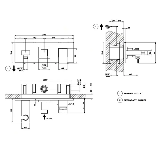 переключатель Push, подвод воды и держатель лейки
