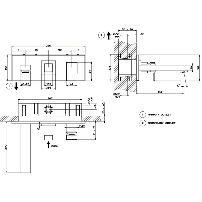 Gessi Rettangolo Смеситель для ванны встраиваемый, 2 потребителя, излив, внешняя часть, цвет: chrome 44906#031