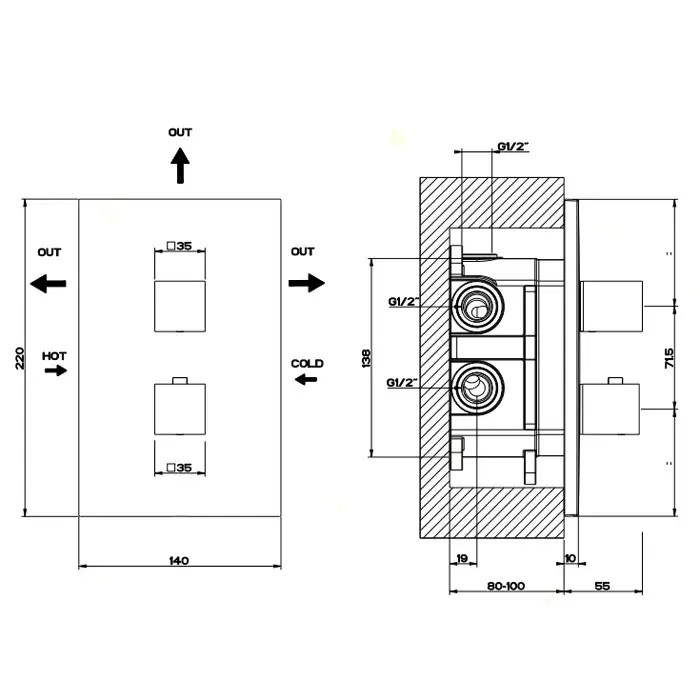 Gessi Rettangolo Термостат для душа встраиваемый, 3 потребителя, запорный вентиль, цвет: chrome 20190#031