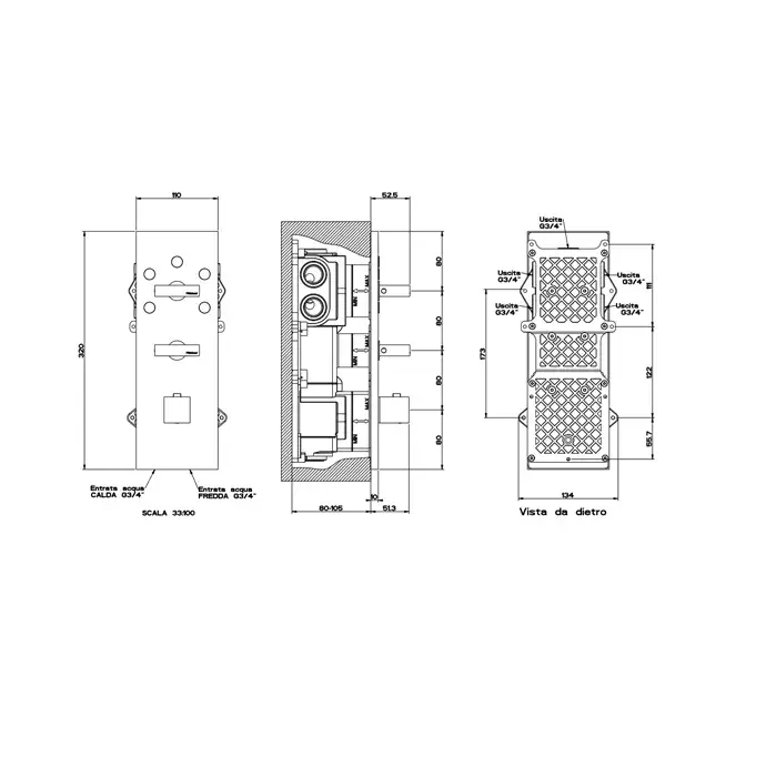 Gessi Rettangolo Встраиваемый термостат, с 3 независимыми выходами, цвет: black metal PVD 43026#706