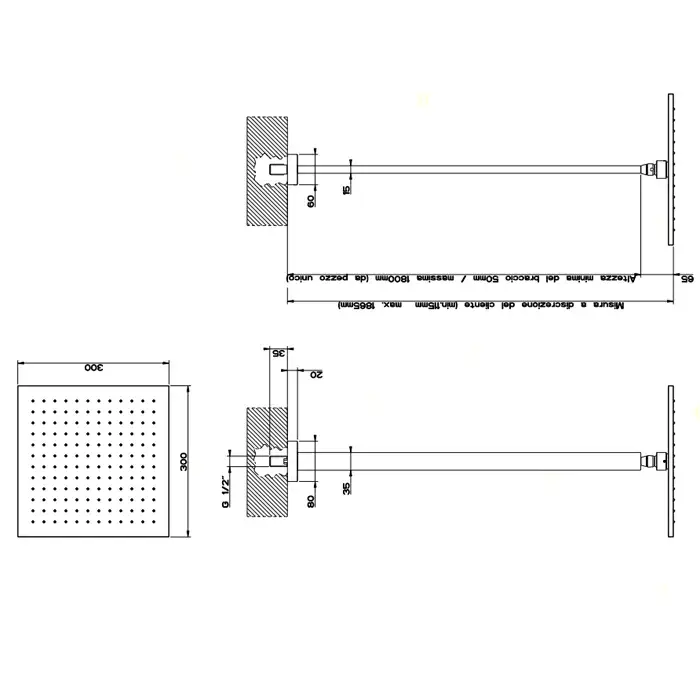 Gessi Rettangolo Верхний душ 30x30 см 1 вид струи, кронштейн потолочный под заказ, цвет: chrome 15199#031