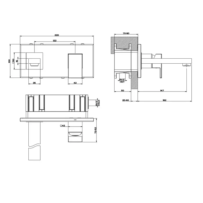 Gessi Rettangolo Вывод воды на 1/2, цвет: finox brushed nickel 20169#149