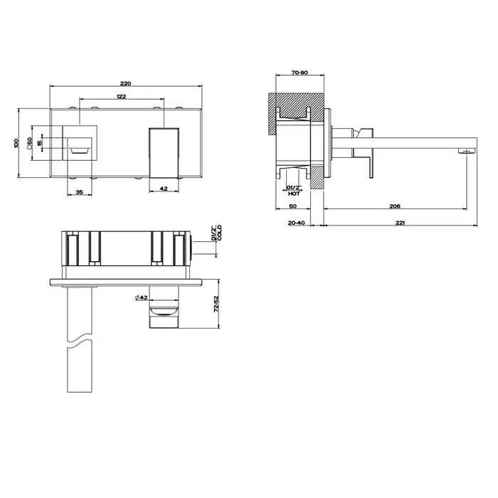 Gessi Rettangolo Встраиваемый однорычажный смеситель, излив 20,6 cм, цвет: black metal brushed PVD 44836#707