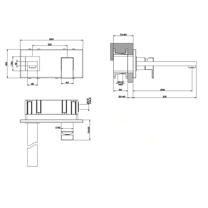 Gessi Rettangolo Встраиваемый однорычажный смеситель, излив 20,6 cм, цвет хром 44836#031