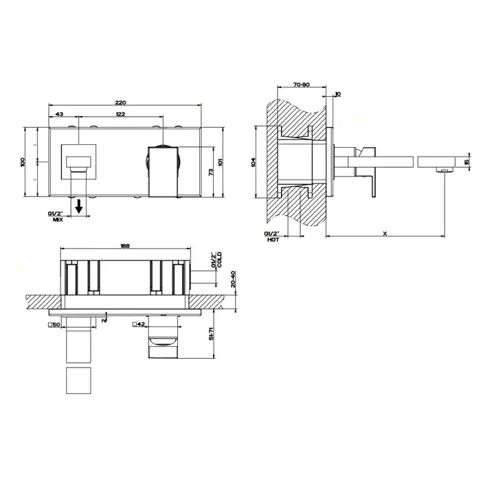 Gessi Rettangolo Встраиваемый однорычажный смеситель с инд.длиной излива, цвет хром 44834#031