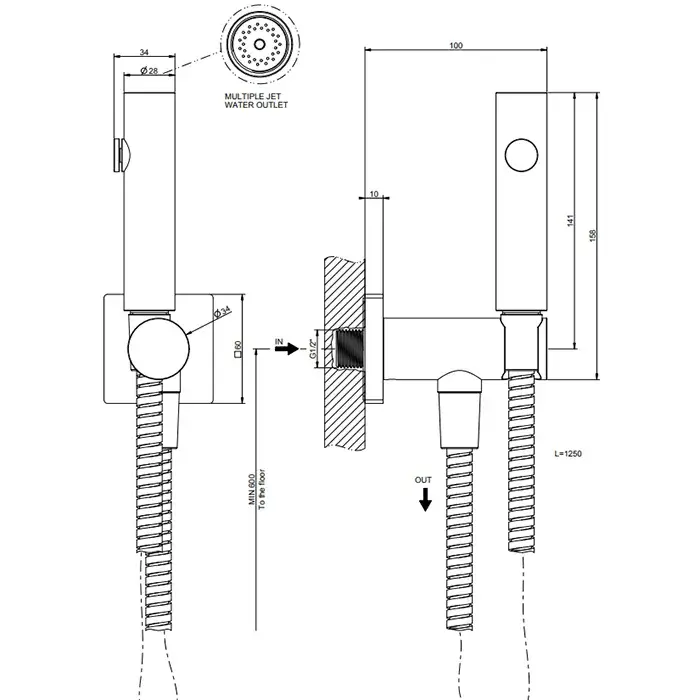 Gessi Rilievo Гигиенический душ многостуйный, шланг 125 см, цвет: matte black 59153#299