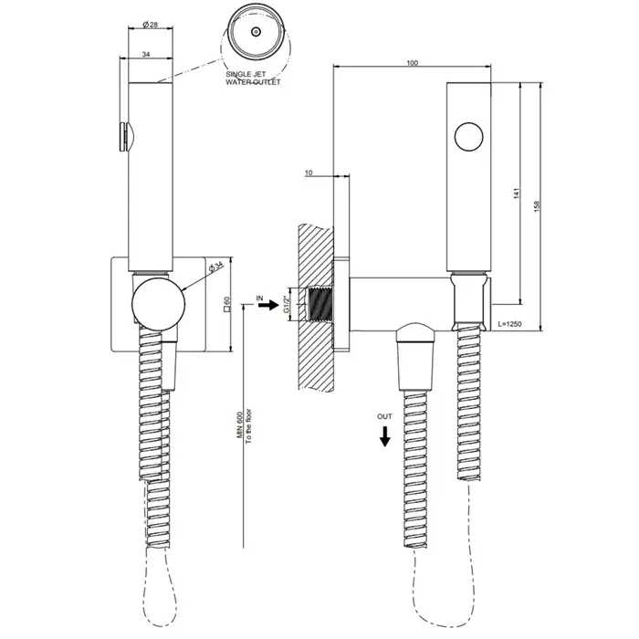 Gessi Rilievo Гигиенический душ одноструйный, держатель с подводом воды, шланг 125 см, цвет: chrome 59151#031