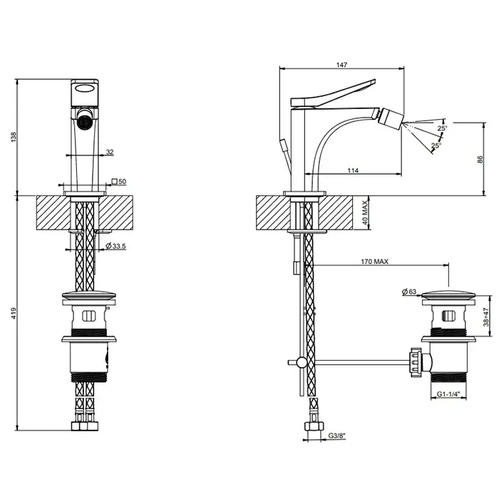 Gessi Rilievo Смеситель для биде, однорычажный, с донным клапаном, цвет: matte black 59007#299