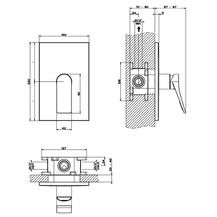 Gessi Rilievo Смеситель для душа встраиваемый на 1 потребителя, внешняя часть, цвет: matte black 59061#299