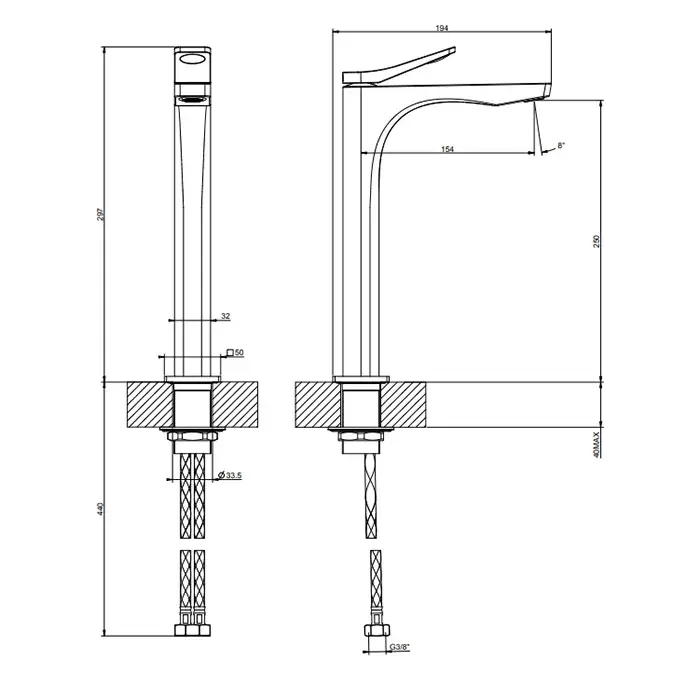 Gessi Rilievo Смеситель для раков. на 1 отв. без дон. клап. h29,7 cм, цвет nero XL 59004#299
