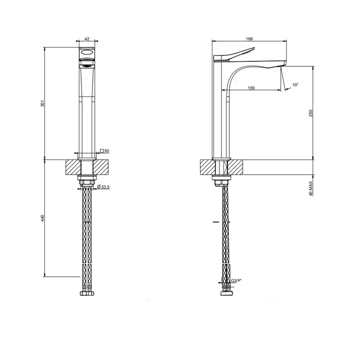 Gessi Rilievo Смеситель для раков. на 1 отв. без дон. клап. h30,1 cм, цвет nero XL 59010#299