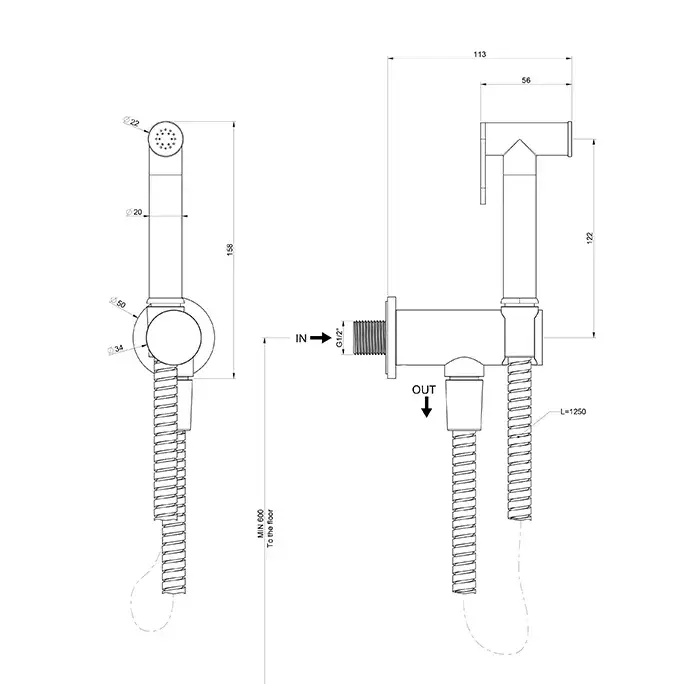 Gessi Гигиенический душ, с выпуском-держателем и шлангом 1.25 м цвет: finox brushed nickel 14331#149
