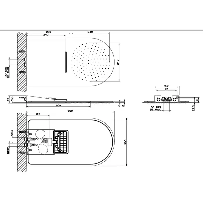 Gessi Tremillimetri Quadro Верхний душ настенный 30x55 см 2 вида струи, цвет: matte black 33083#299