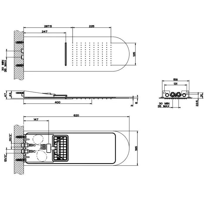 Gessi Tremillimetri Верхний душ настенный 30x55 см 2 вида струи, цвет: black metal brushed PVD 33083#707