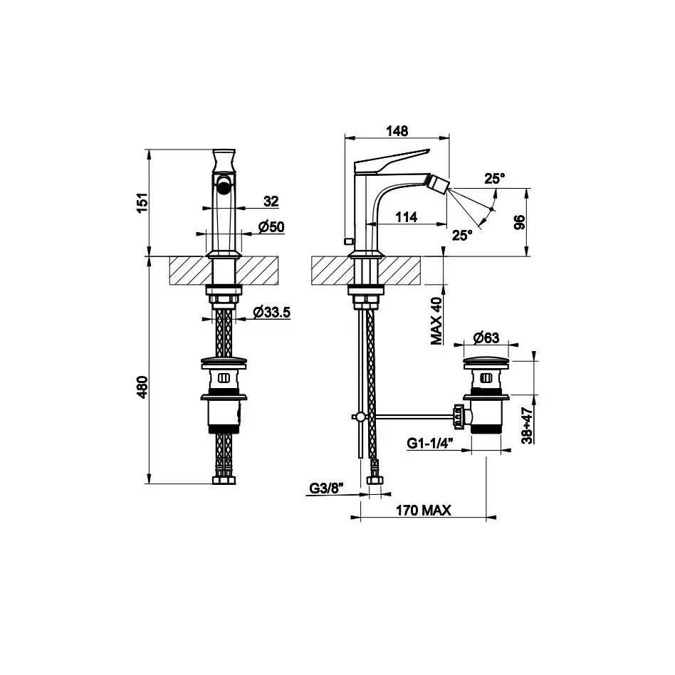 Gessi Ventaglio Смеситель для биде, с донным клапаном, длина излива 11,4 см, цвет: chrome 72007#031