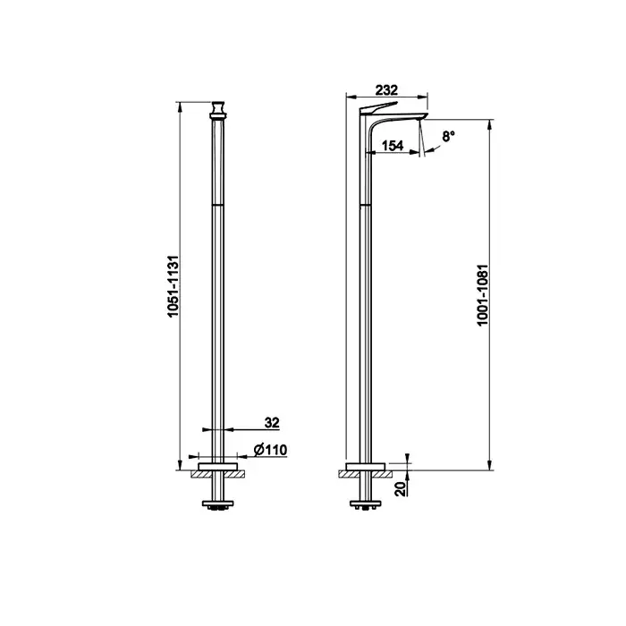 Gessi Ventaglio Смеситель для раковины напольный, высота излива 108,1 см, цвет: copper brushed PVD 72095#708