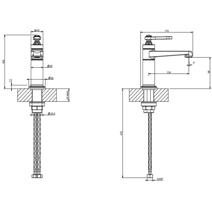 Gessi Venti20 Смеситель для раковины без донного клапана однорычажный, цвет: finox brushed nickel 65002#149