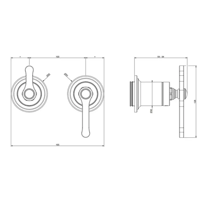 Gessi Venti20 Смеситель для ванны встраиваемый на 2 потребителя, внешняя часть, цвет: chrome 65038#031