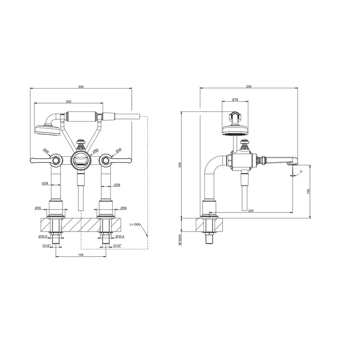 Gessi Venti20 Смеситель на борт ванны на 2 отверстия, с ручн. душем, цвет: chrome 65115#031