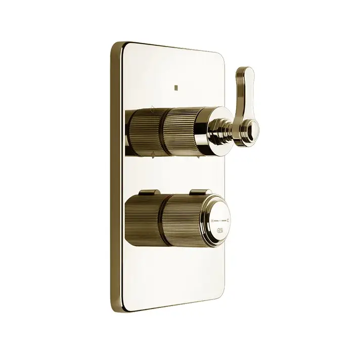 Gessi Venti20 Термостат для ванны встраиваемый, 3 потребителя, запорный вентиль, цвет: brass PVD 65137#710