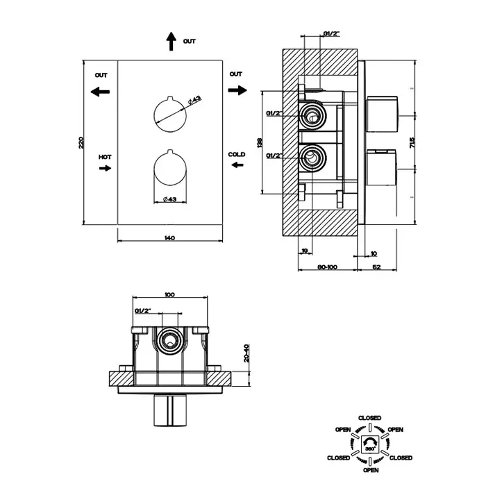 Gessi Via Manzoni Смеситель для душа термостатический 3 потребителя, встраиваемый, цвет: matte black 38796#299