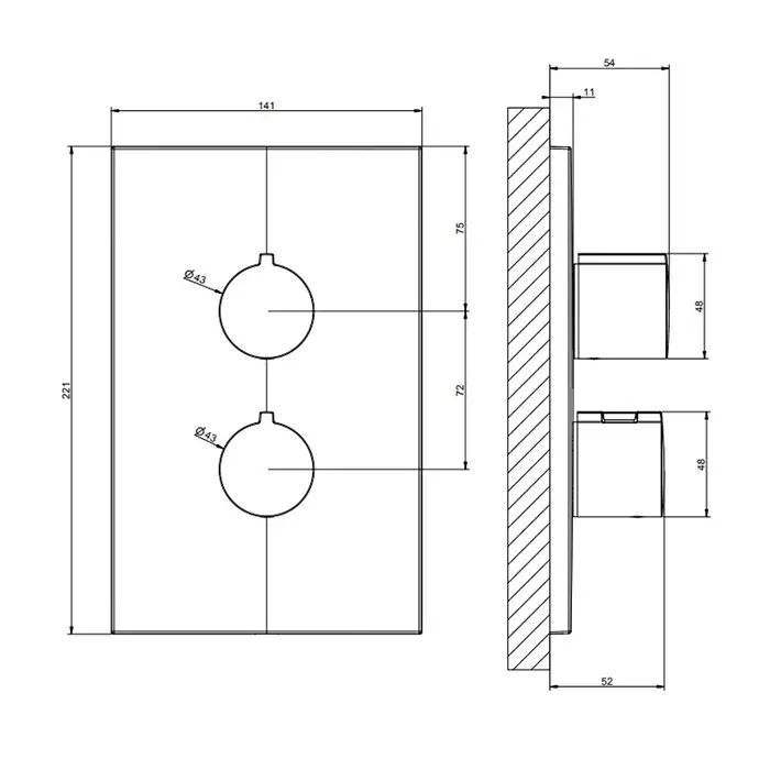Gessi Via Manzoni Термостат для ванны встраиваемый, 2 потребителя, запорный вентиль, цвет: chrome 38794#031