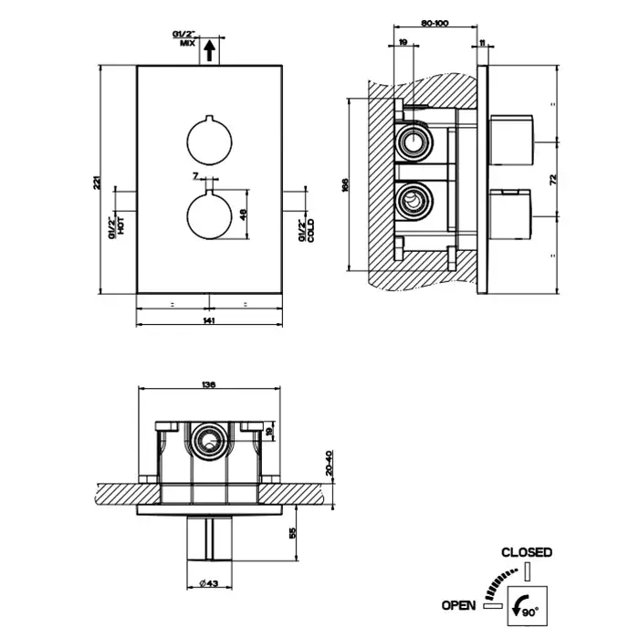 Gessi Via Manzoni Смеситель для душа встраиваемый на 1 потребителя, внешняя часть, цвет: chrome 38654#031
