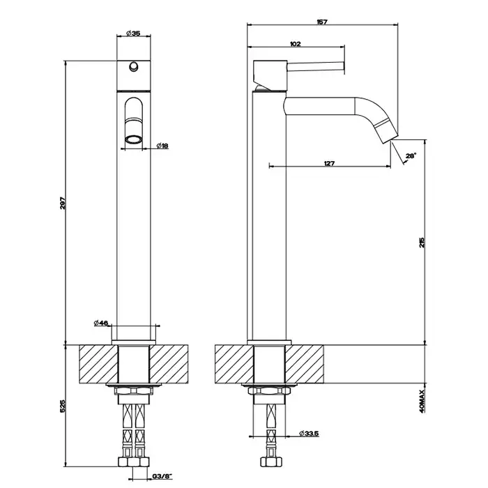 Gessi Via Tortona Смеситель для ванны на 2 потребителя, излив 17,5 см, цвет: chrome 18613#031