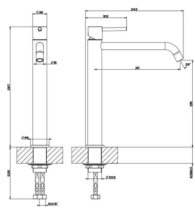 Gessi Via Tortona Смеситель для раковины встраиваемый, излив 21,2 см, внешняя часть, цвет: chrome 44827#031