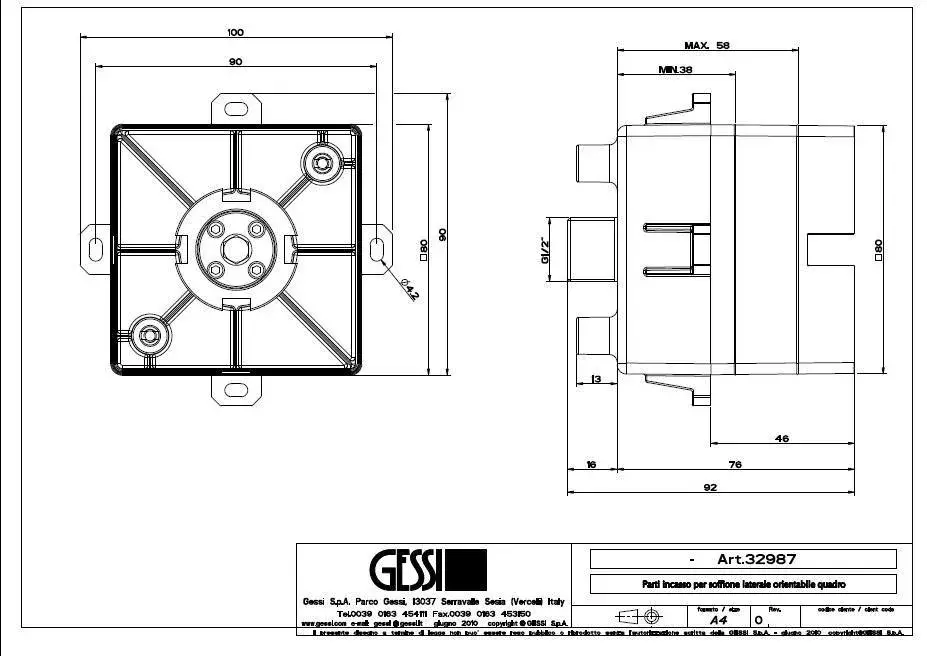Gessi Встраиваемая часть для поворотной боковой форсунки 32987#031