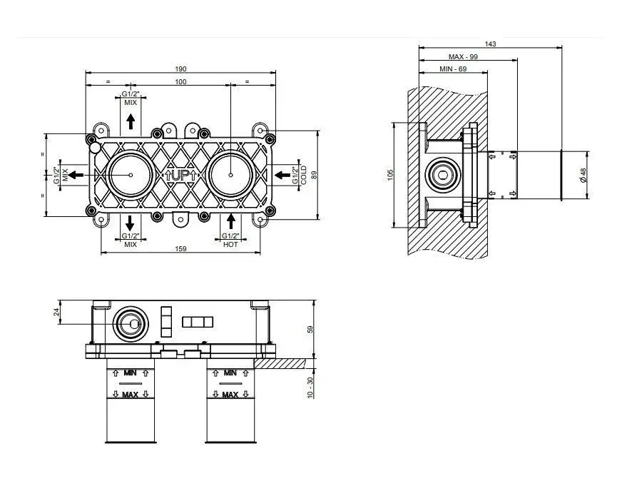 Gessi Встраиваемая часть для термостатического смесителя для душа 54169#239