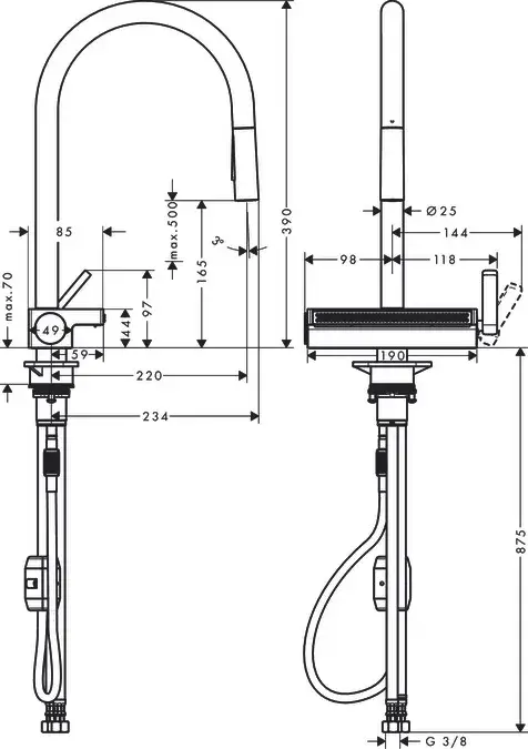 Hansgrohe Aquno Select M81 Смеситель для кух. мойки 170 3 типа струи, с выдв. изл. цвет: мат. черный 73837670