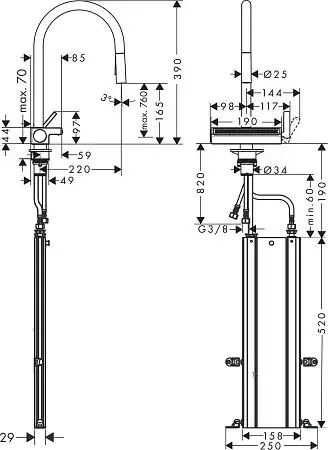 Hansgrohe Aquno Select M81 Смеситель для кух. мойки однорыч. 250, с выдв. изл. цвет: нержав. сталь 73836800